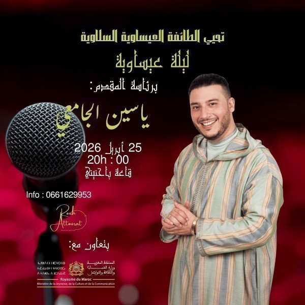 Experience the spiritual and musical richness of Moroccan heritage with the Aïssawa Night featuring Yassine El Jamai, a captivating live performance dedicated to traditional Sufi music.